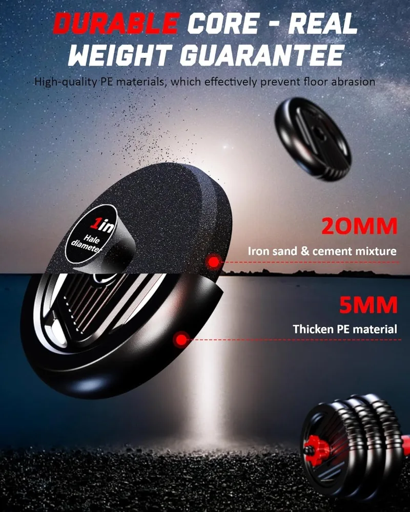 - 【Superior Build and Safety】Constructed with eco-friendly, high-quality PE materials and a solid cement and iron sand core, our set guarantees durability and accurate weight. Enhanced with advanced safety nuts, it ensures a secure, stable workout experience.