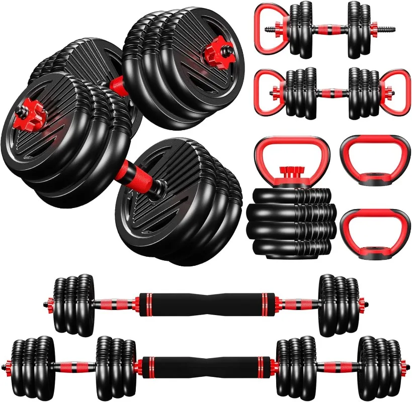- 【Versatile Fitness Solution】Elevate your home gym with our 4-in-1 Adjustable Dumbbell Set. Perfect for a range of exercises from squats to bench presses, it transforms into dumbbells, a barbell, kettlebells, and push-up stands, catering to all your workout needs.